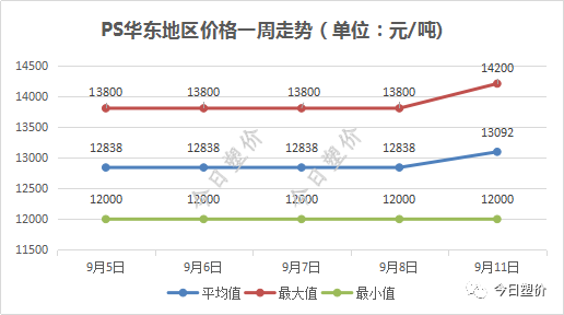 上游苯乙烯方面,9月11日韓國(guó)FOB主港收盤價(jià)格下跌15美元/噸報(bào)1373.5-1374.5美元/噸,國(guó)內(nèi)華東苯乙烯收盤價(jià)格上漲50元/噸報(bào)11800元/噸。目前下游需求跟進(jìn)一般,大中型企業(yè)訂單穩(wěn)定;中小企業(yè)開工略有不足,但鑒于多數(shù)企業(yè)已完成了一輪補(bǔ)貨,本周批量拿貨踴躍氛圍或難出現(xiàn)。預(yù)計(jì)今日PS/EPS市場(chǎng)將維持整理格局。