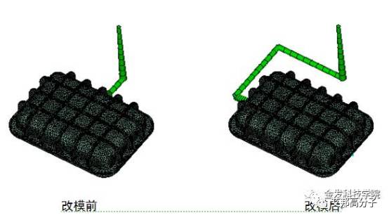 改善后效果如下:可以看出在更改進(jìn)膠口位置以后,制品無(wú)翹曲痕跡,這樣才是良好的制品.