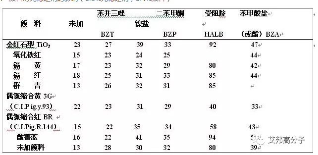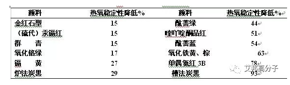 顏料對有加抗氧劑(酚類)PP的影響大小參見表3。