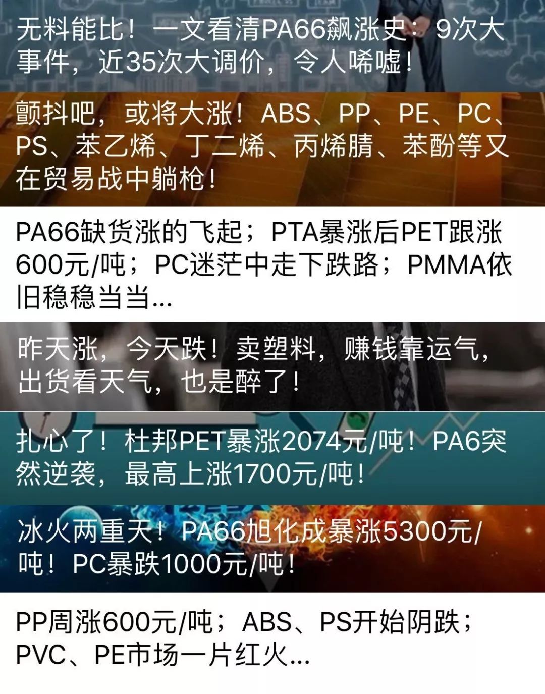 再來看看塑料行業(yè),近期行情也是起伏不定,近兩天才逐漸小幅回調,很多終端企業(yè)飽受漲價之苦!