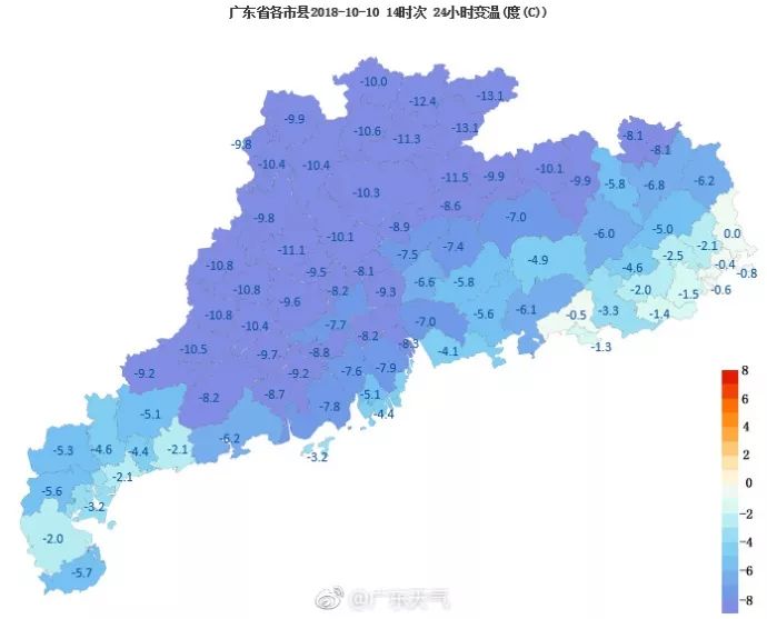 整個廣東省溫度都在降