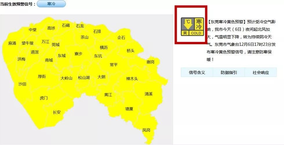 東莞氣象臺發(fā)布寒冷黃色預(yù)警!