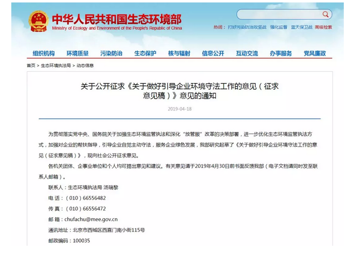 近日,生態(tài)環(huán)境部辦公廳印發(fā)通知,向社會公開征求《關(guān)于做好引導企業(yè)環(huán)境守法工作的意見(征求意見稿)》意見?!兑庖姟访鞔_要求,建立單位內(nèi)部“首接責任制”,對行政相對人實行有關(guān)事項“一次性告知”;對一般違法行為慎用查封、扣押等措施,嚴格禁止“一律頂格處罰”“一律關(guān)?!薄跋韧T僬f”等簡單粗暴行為。