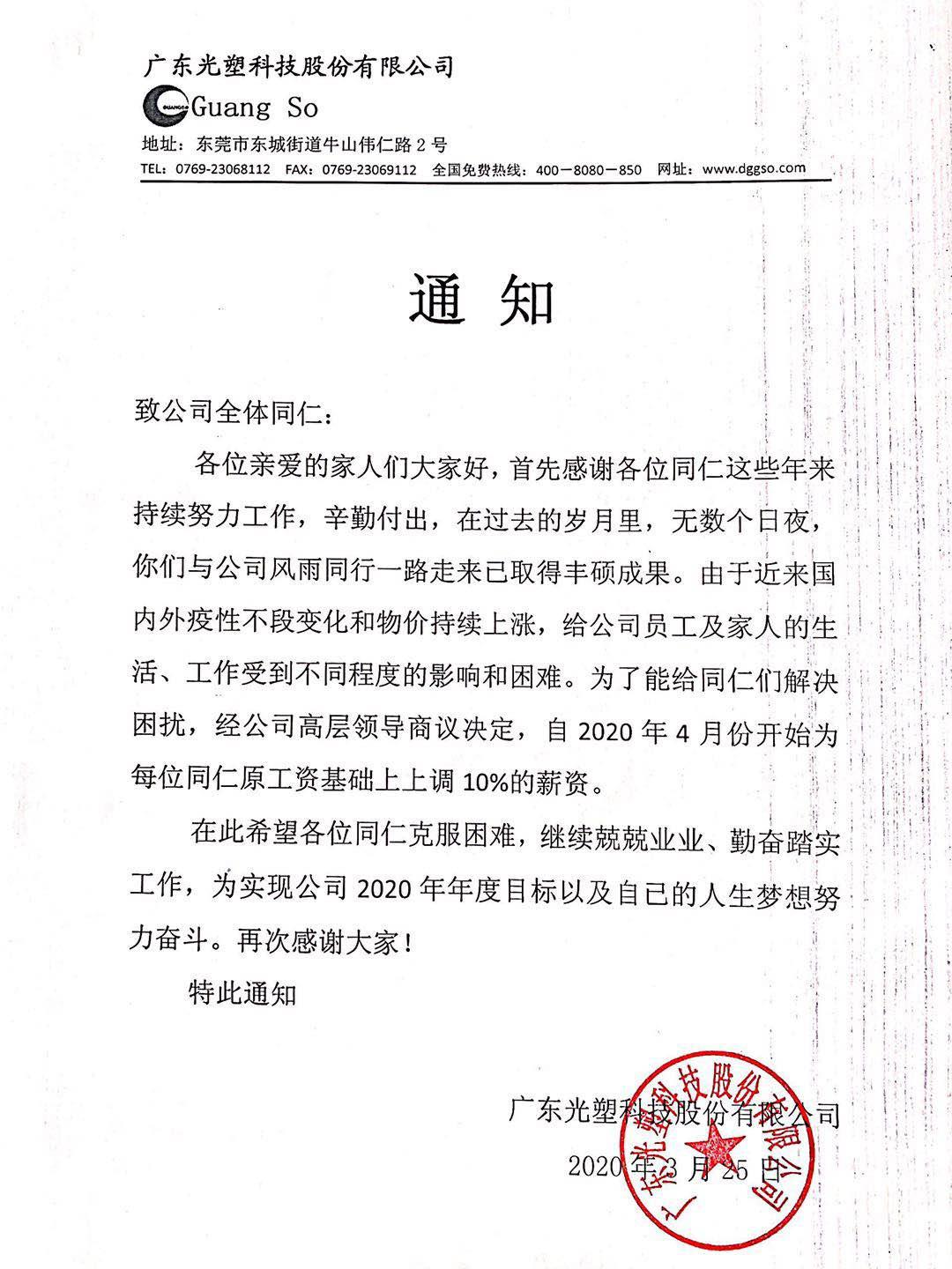 文章標題:點贊-光塑公司為員工逆市加薪