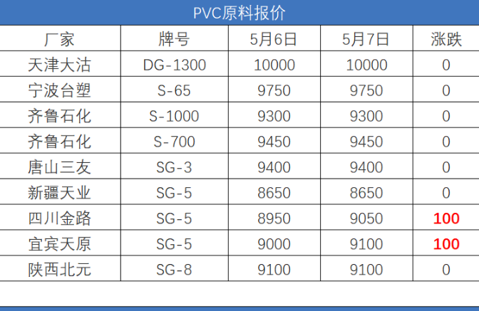PVC:昨日PVC現(xiàn)貨市場價格大漲,五一期間國內電石市場依舊是貨源緊張,下游采購積極,節(jié)假日期間全球大宗期貨產品上漲,節(jié)后國內市場跟漲,PVC期貨受檢修等利好支撐,盤面大漲,因市場貨源緊張,部分現(xiàn)貨偏緊,市場報價跟漲意向較強,5月PVC生產企業(yè)檢修計劃有所增加,支撐參與者心態(tài);近期下游PVC制品企業(yè)開工情況尚可,短期PVC現(xiàn)貨市場價格繼續(xù)維持高位,預計今日PVC現(xiàn)貨市場價格上調,華南電石五型主流價格參考在9150-9280元左右。(未含稅)